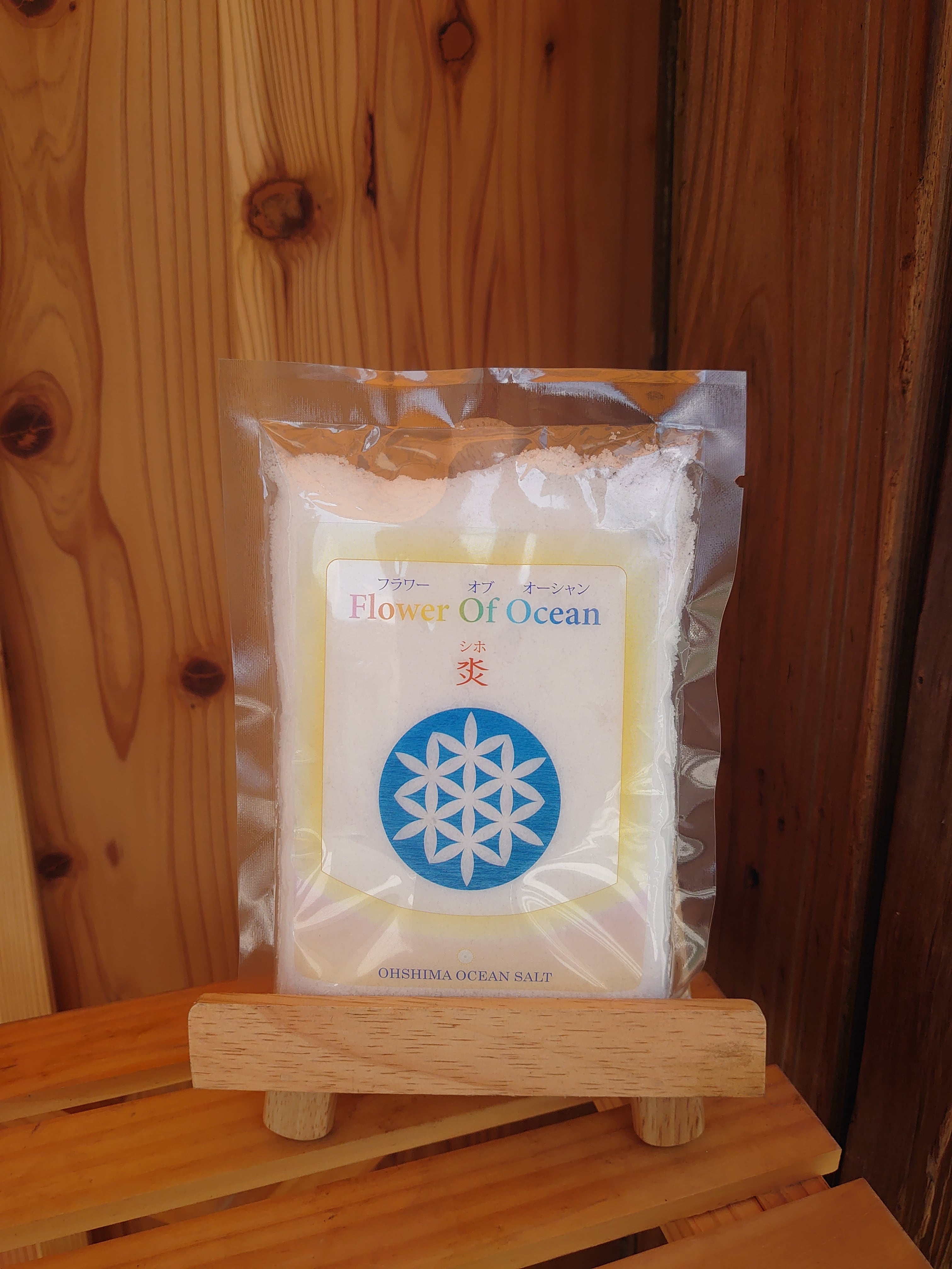 東京・伊豆大島で地下二百数十mで海水と真水(まみず)が合流している深層海水を原料とし、いのちの母ともいえる海からその恵みを頂き、太陽熱や風など自然エネルギーを利用できるよう設計されたドーム型装置で昼夜を問わず海水を霧状に噴射し少しずつ濃縮していきます。