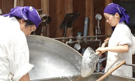 濃縮後には古来から伝わる平釜で結晶させる製法を守っています。
